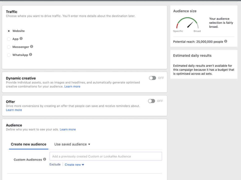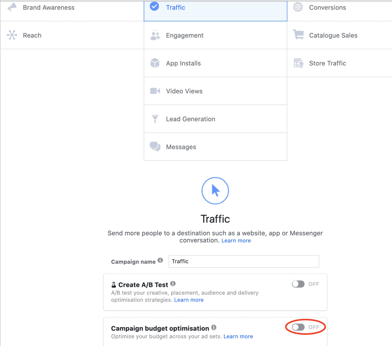 Give your campaign a name and toggle on the ‘Campaign Budget Optimization (CBO)’ button. Facebook has been planning to make CBO mandatory for some time now so it’s better to have it on for best practice. You can read more about what CBO is here.