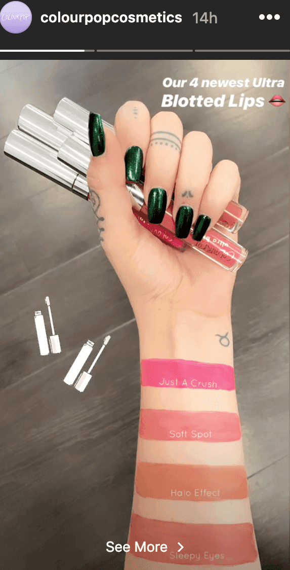 Do more video content - tutorials, product try on, behind-the-scenes of a photoshoot etc. Check out Colourpop’s Instagram for inspiration.