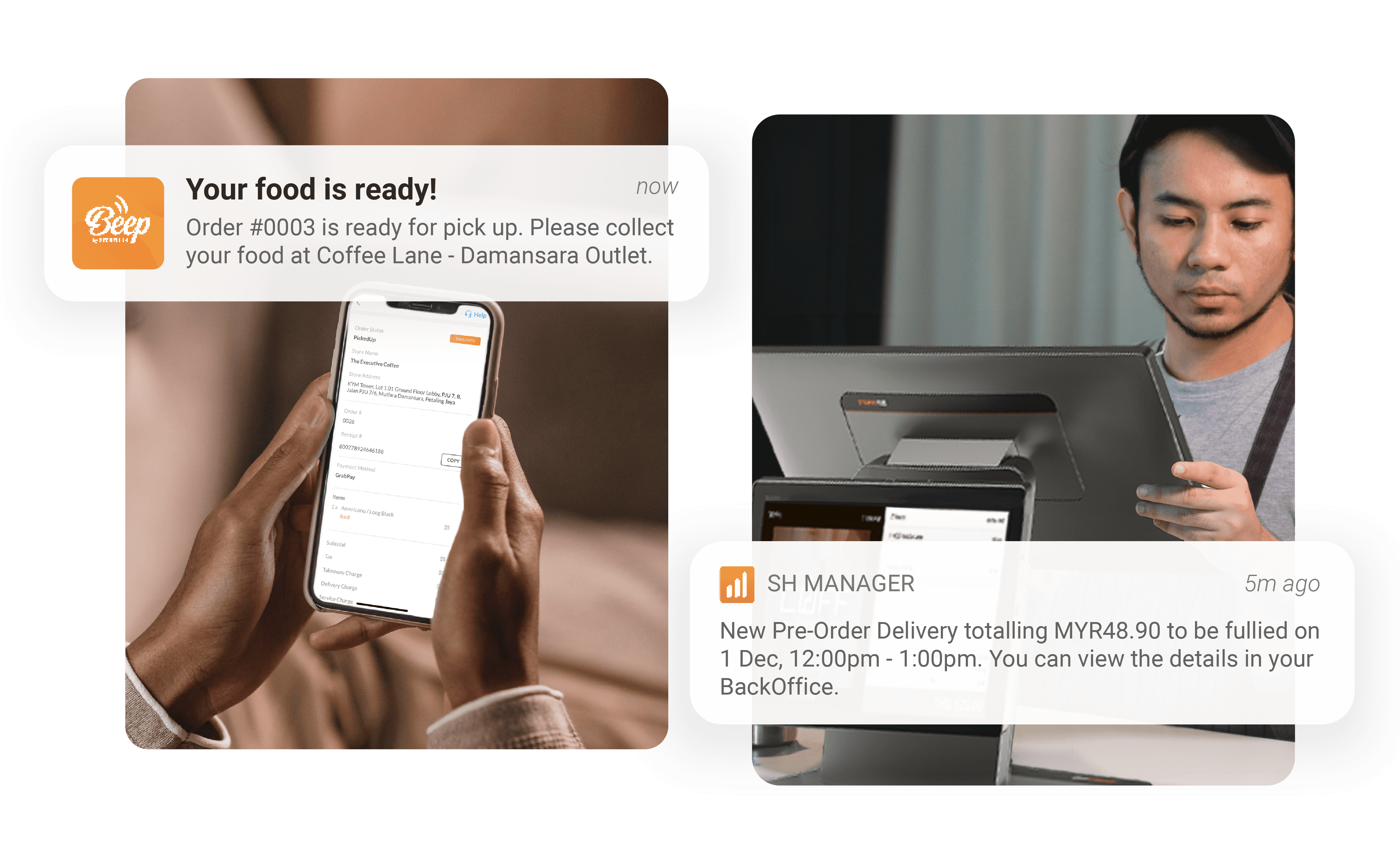 Customers order straight from their phones via the Beep App. Orders flow into your system instantly – no manual input, no bottlenecks.