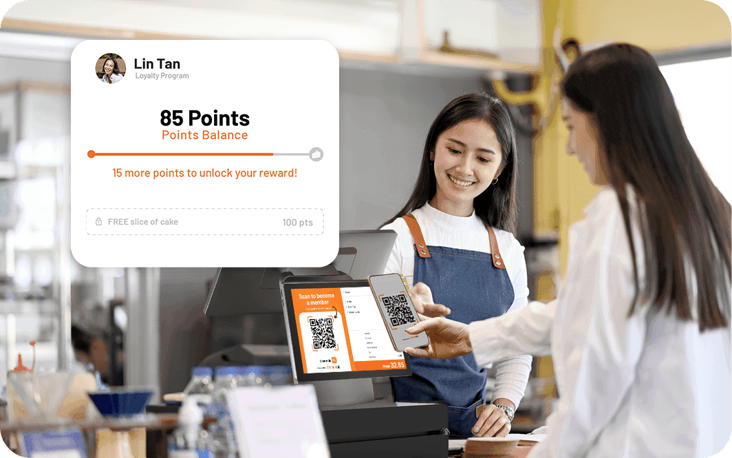 Track points automatically through POS, QR Order & Pay, and delivery. Manage everything from one dashboard – no manual input, no missed data.