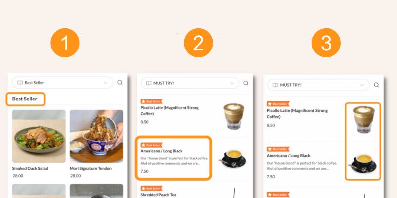 Segmenting your best-selling items or items you want to specifically feature will help to encourage and entice your customers to order those items and optimise your online menu.